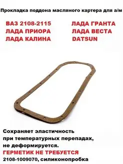 Прокладка поддона для ваз 2108-2115, Гранта, Калина, Приора