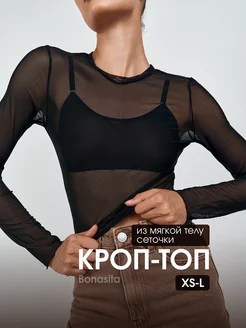 Удлиненный кроп топ с рукавами сетка прозрачный