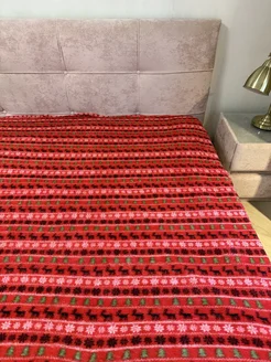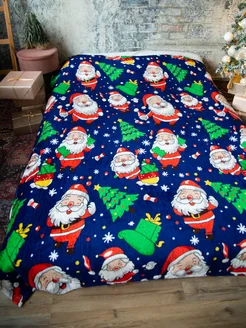 Плед новогодний 180х200 см на кровать и диван велсофт