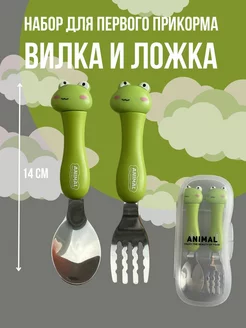 Набор столовых приборов для прикорма малышей в чехле Лягушки