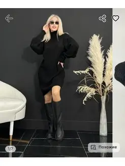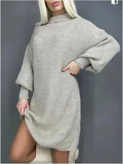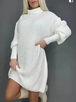 Свитер женский длинный с горлом вязаное платье туника теплое