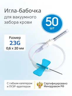 Игла бабочка для вакуумного забора крови (катетер) 23g, 50шт