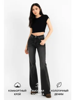 Джинсы клеш от колена с высокой посадкой стрейч