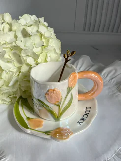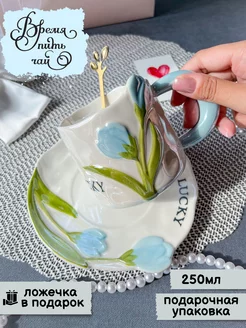 Чайная пара подарочная, набор чашка и блюдце керамика