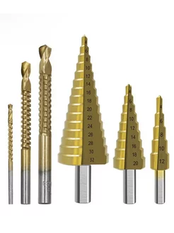 Ступенчатые и фрезеровальные сверла набор 6 шт