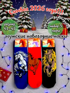 Символ 2026 года Носки с Лошадками размер 41-47 Набор 3 пары