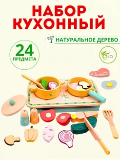 Детский игровой набор деревянная игрушечная посуда