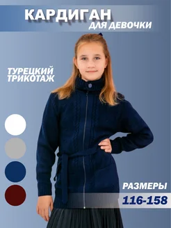 Кардиган для девочки на молнии с поясом