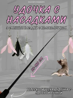 Игрушка удочка дразнилка с насадками для кошек
