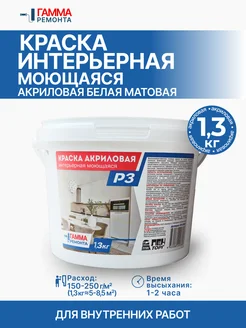Краска для стен моющаяся интерьерная акриловая 1.3 кг