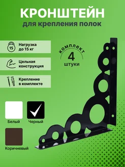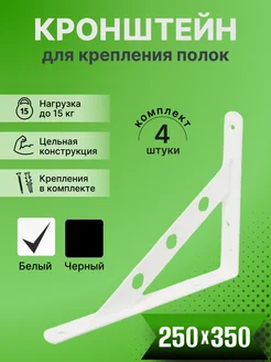 Кронштейн для полки на стену усиленный, 25х35см, 4 штуки