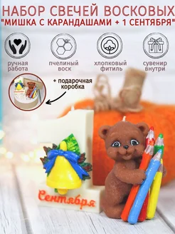 Подарочный набор свечей "Мишка с карандашами + 1 сентября"