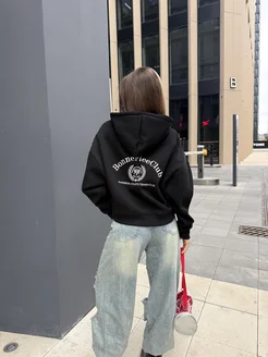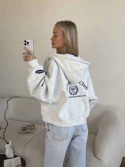 Зип худи оверсайз с начесом на молнии с принтом теплая
