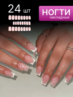 Накладные ногти с клеем и дизайном френч типсы