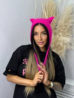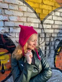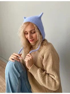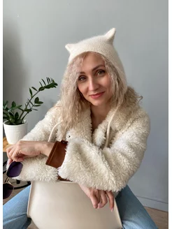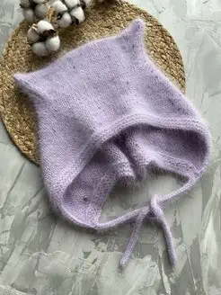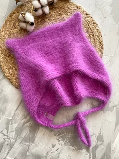 шапка чепчик вязаный из ангоры с ушками