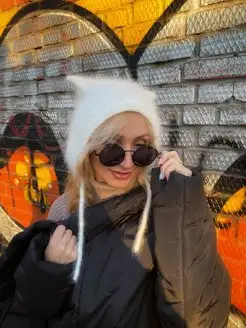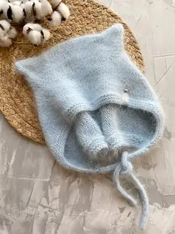 Шапка чепчик из ангоры с ушками