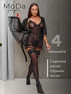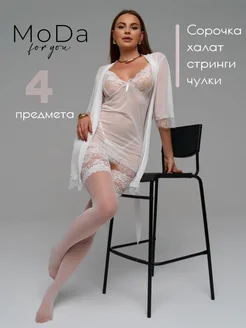 Пеньюар комплект кружевной халат и сорочка с чулками