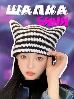 Шапка бини с ушками Y2K вязаная