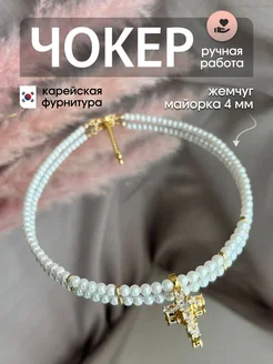 Чокер жемчуг майорка с крестом
