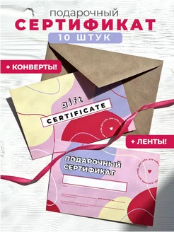 Подарочные сертификаты на услуги с конвертом 10 шт