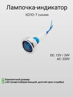Лампочка неоновая XD10-7 синяя - 5 штук