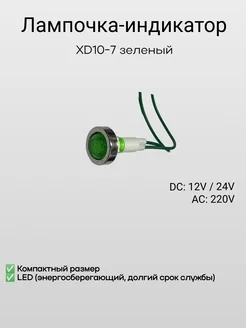 Лампочка неоновая XD10-7 зеленая - 5 штук