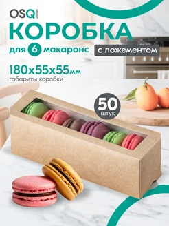 Коробка для 6 макаронс крафт, 18х5,5х5,5 см, 50шт
