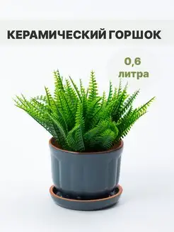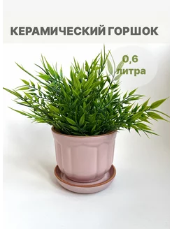 Керамический горшок с поддоном для цветов, диаметр 13,5 см