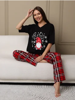 пижама со штанами новогодняя хлопок домашний костюм