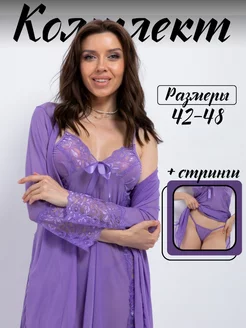 Ночная сорочка и трусики-шорты шелковая с кружевом