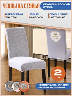 Чехлы на стулья со спинкой на кухню 2 шт с рисунком плотные