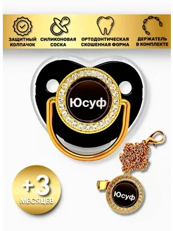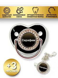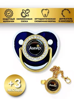 Соска пустышка силиконовая "Люблю папу" со стразами