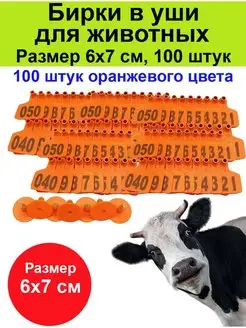 Бирки для кров, телят, КРС, животных в уши ушные 100 шт
