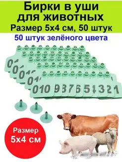 Бирки для коз, овец, свиней, животных ушные в уши 50 шт