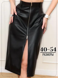 Юбка кожаная миди на молнии