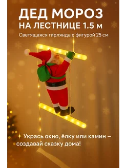 Дед Мороз на лестнице 1.5м гирлянда