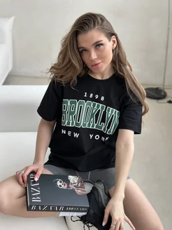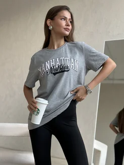 Футболка удлиненная с принтом надписью