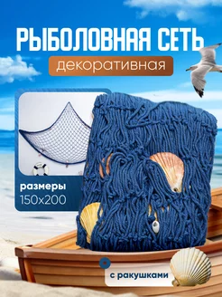 Декор на стену сеть синяя с ракушками