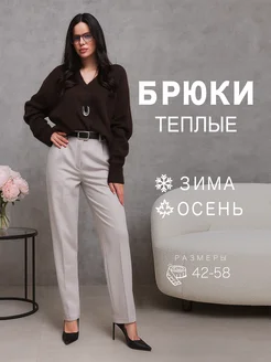 Брюки классические утепленные бананы на резинке зимние