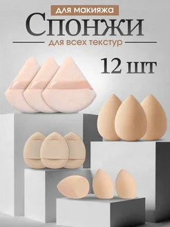 Набор спонжей для макияжа лица и пуховки для пудры. 12 шт