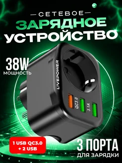Блок быстрой зарядки 1USB QC3.0 + 2USB 5V 3.1A 38W