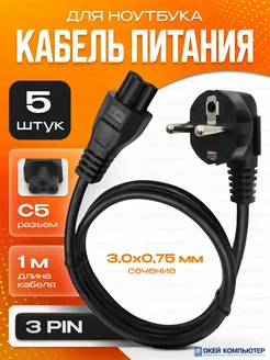 Кабель питания 5 штук C5 для зарядки ноутбука 3.0х0.75 мм