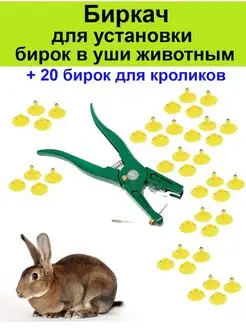 Биркач для кроликов, биркователь + 30 бирок в уши ушных