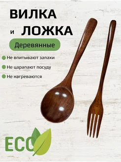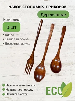 Ложки и вилка, набор деревянных столовых приборов, 3 шт