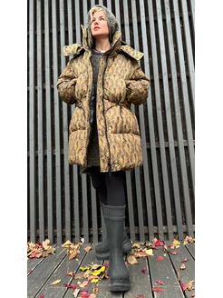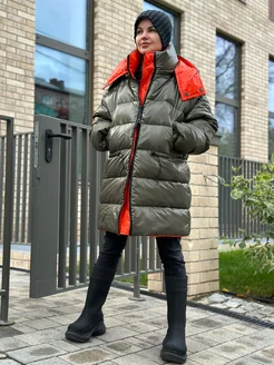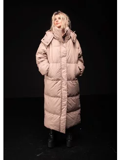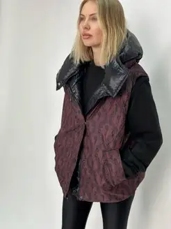 Жилет утепленный на пуху с капюшоном длина 65 см