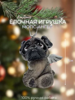 Елочная игрушка Мопс - Ангел