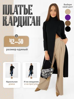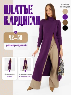 Платье джемпер вязаное с разрезом оверсайз теплое на осень