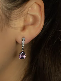 Серьги бижутерия с камнем фиолетовые