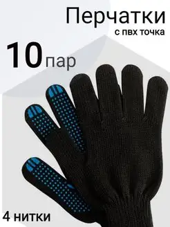 Перчатки рабочие универсальные 4 нитки с пвх 10 пар черные