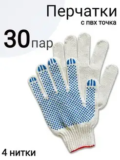 Перчатки рабочие универсальные 4 нитки с пвх 30 пар белые